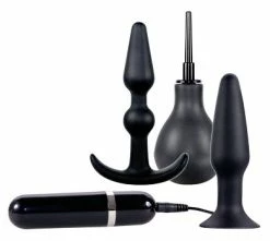 Anale Lust-Fantasien werden Wirklichkeit!Ob mit dem Vibro-Plug mit Saugnapf und 10-Stufen-Vibration per Knopfdruck, dem Butt Plug in Ankerform oder der Intimdusche, genießen Sie die eindringliche Lust, die Ihnen hinterrücks zuteil wird.Vibro-Plug: ca. 12 cm Gesamtlänge, Einführtiefe ca. 10 cm, Ø 1-3 cm. Butt Plug: Gesamtlänge ca. 10 cm, Einführtiefe ca. 9 cm, Ø 1,2 cm. Intimdusche: 220 ml Fassungsvermögen, Einführtiefe ca. 7 cm. Material: Silikon, ABS, phthalatfrei gemäß EU-Verordnung 1907/2006/EC.Batterien bitte extra bestellen: 2 x Micro.
