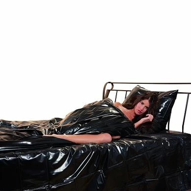 Die schwarze Bettdecke für deine versauten Spielereien. Leicht abwischbar mit Einschubschlitz, aus 100% Vinyl für deinen Lackfetisch genau richtig. 135 x 200 cm Standardmaß.