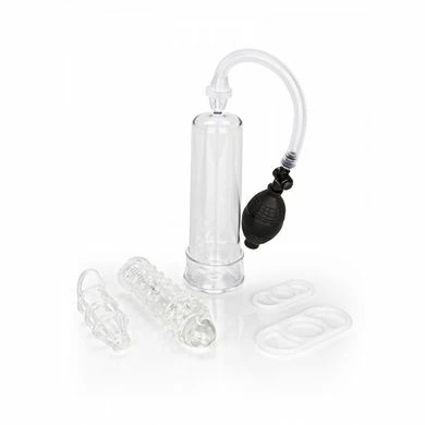 Du bist überfordert von den Möglichkeiten und Wegen, deine Männlichkeit zu stählen und weißt nicht, was dir am meisten zusagt? Dann greif zum His Enlargement Kit, denn das umfangreiche Set lässt dich lustvoll alles ausprobieren – entscheiden kannst du dich später. Die transparente Pumpe aus ABS mit einem angenehm weichem TPE-Eingang lässt dein bestes Stück dank saugendem Unterdruck anwachsen, Penishülle und -manschette aus elastischem TPE sorgen für Extraumfang sowie Länge und reizen mit einer aufregenden Struktur. Die praktischen Silikon-Penisring in zwei Größen sorgen schließlich dafür, dass du länger kannst und deine Erektion standhaft bleibt. Der Pumpzylinder misst 19,7 cm in der Länge und 5,7 cm im Durchmesser. Die Penishülle misst 15 cm in der Länge und 3,75 cm im Durchmesser, die Manschette bietet 11,5 cm Länge und 2,5 cm Durchmesser. Die beiden Ringe besitzen einen Innendurchmesser von 2,5 cm und 3,2 cm.